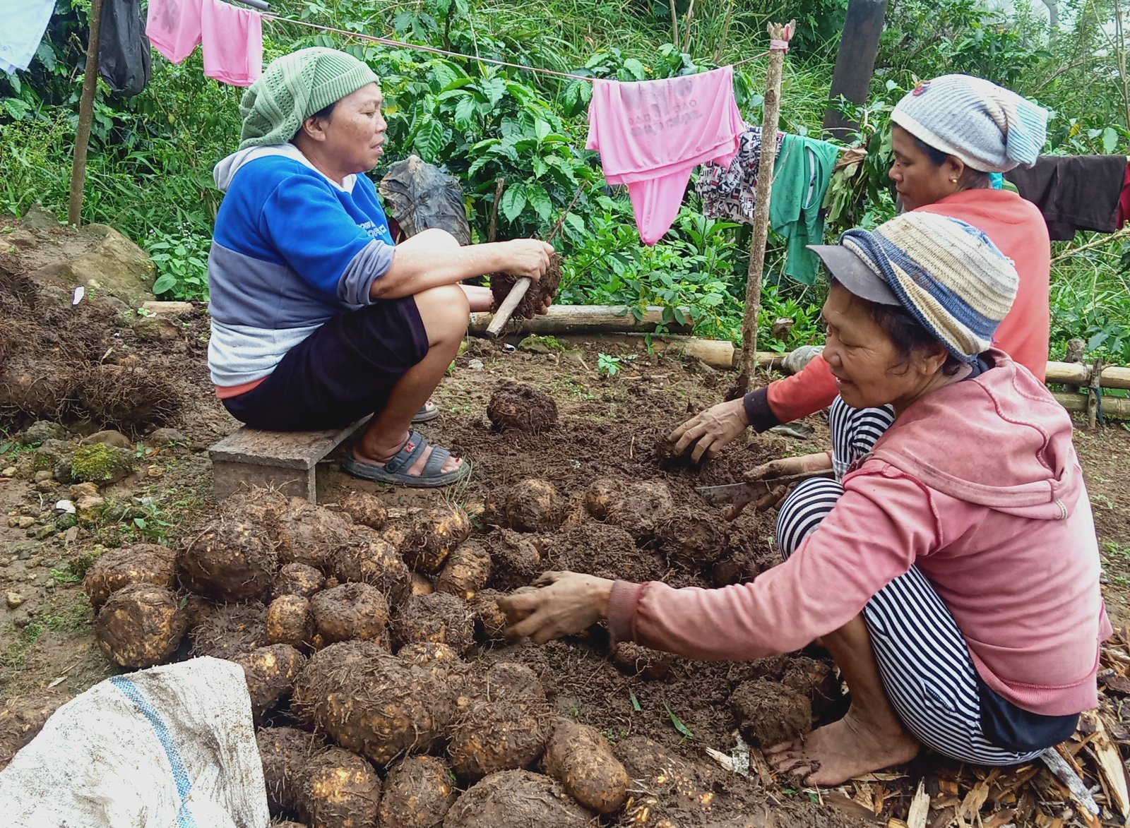 Sejumlah perempuan membersihkan porang sehabis dipanen. Porang merupakan bahan dasar tepung dan mi khas Nusa Tenggara Timur. (dok. JustCOP)
